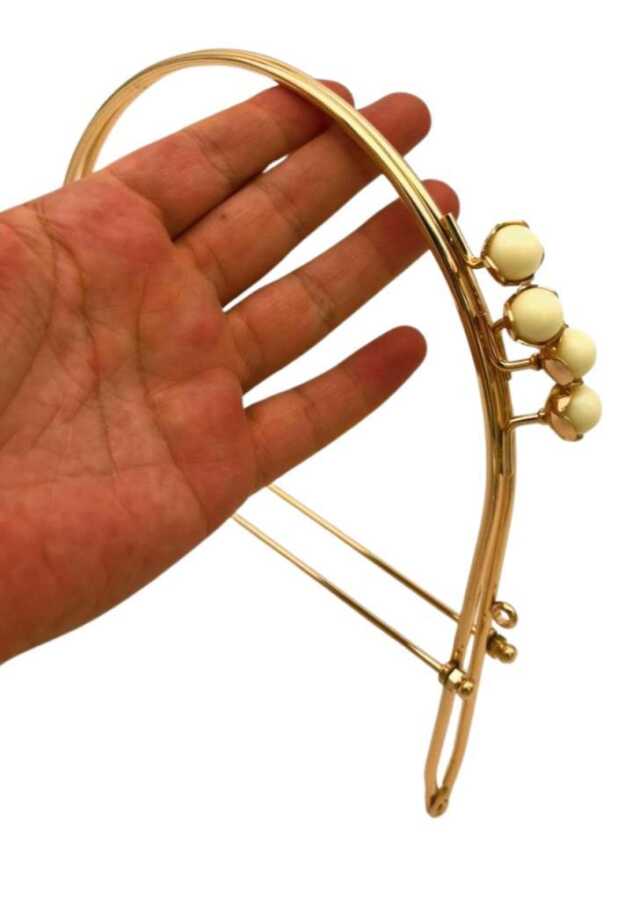 Angel Çanta Aksesuar 19 Cm Light Gold Renk D Model Krem Çift Toplu Çanta Klipsi, Çanta Bursu