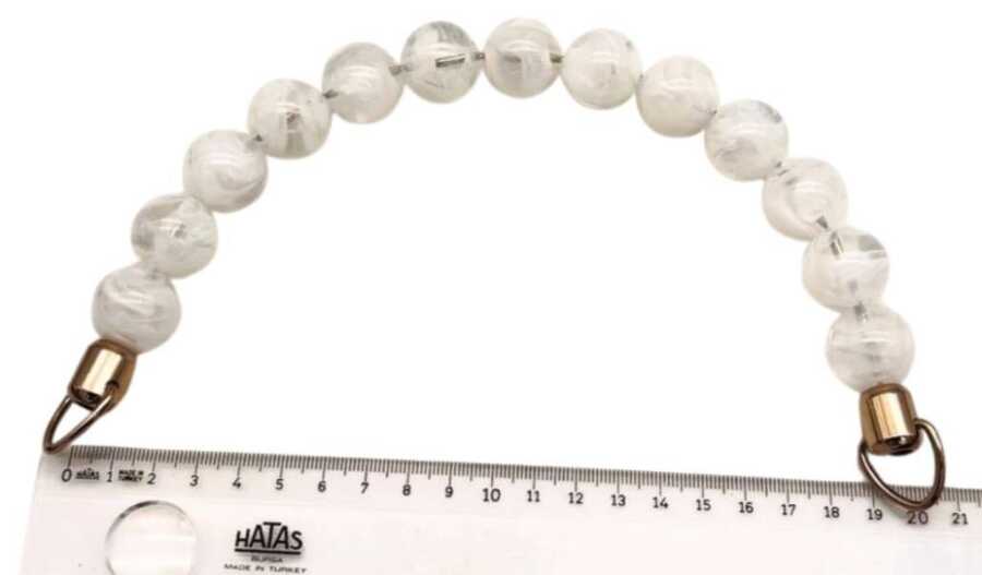 Angel Çanta Aksesuar 20 Cm 22 Mm Boncuklu Çanta Sapı Gümüş Metalli Beyaz Tonlu