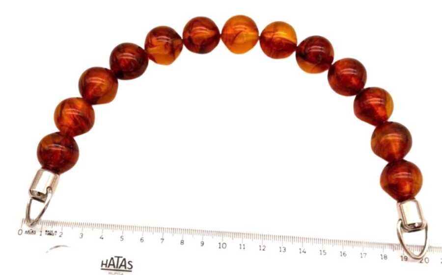 Angel Çanta Aksesuar 20 Cm 22 Mm Boncuklu Çanta Sapı Gümüş Metalli Kehribar Tonlu