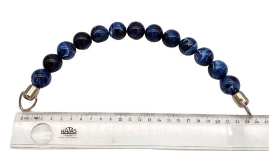Angel Çanta Aksesuar 20 Cm 22 Mm Boncuklu Çanta Sapı Gümüş Metalli Mavi Tonlu