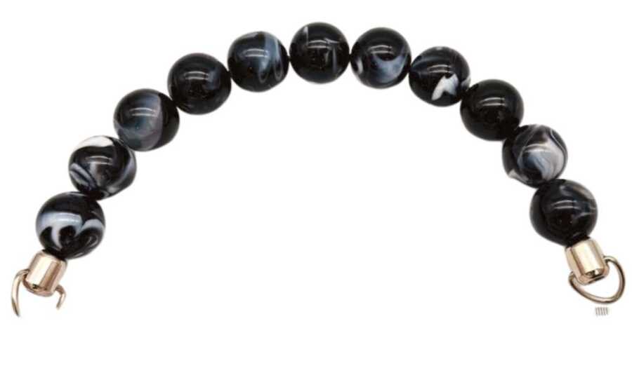 Angel Çanta Aksesuar 20 Cm 24 Mm Boncuklu Çanta Sapı Gümüş Metalli Siyah Tonlu