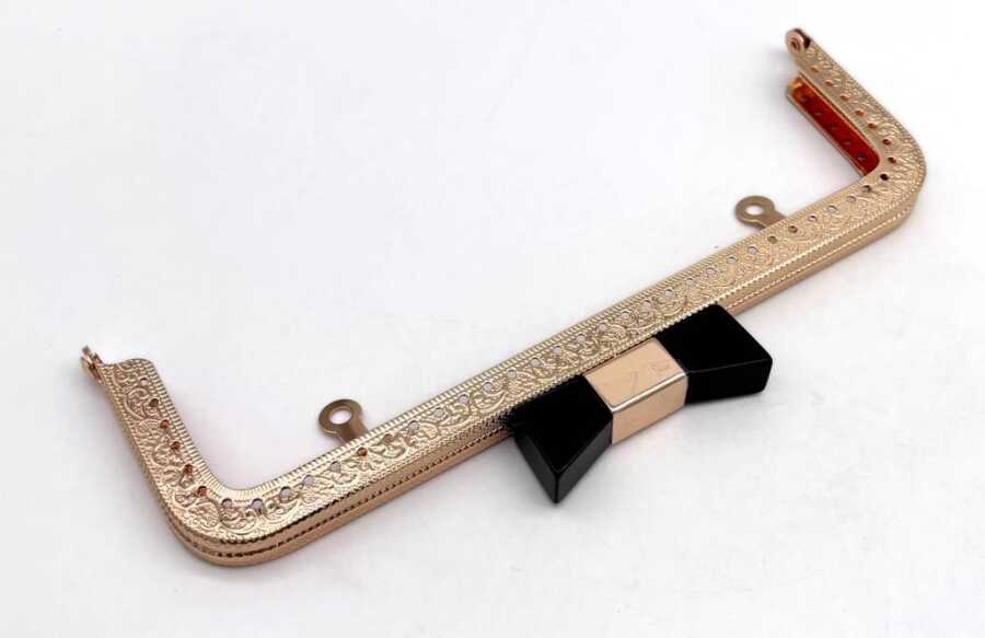 Angel Çanta Aksesuar 20 Cm Light Gold Renk Siyah Kurdele Model Çanta Klipsi, Çanta Bursu