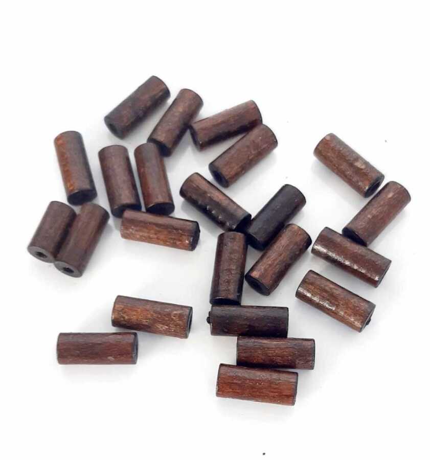 Angel Çanta Aksesuar 20 Mm 10 Adet Koyu Renk Ahşap Silindir Boncuk
