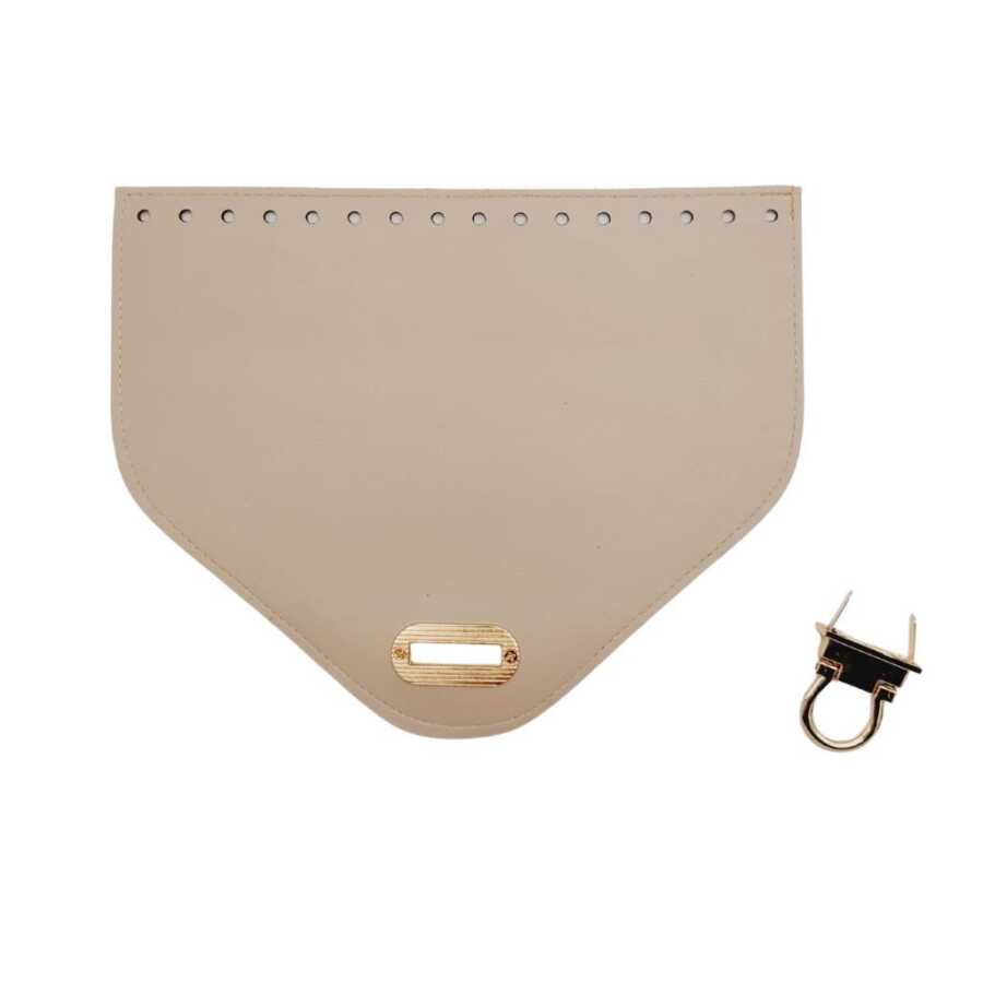Angel Çanta Aksesuar 22.5x18 cm Suni Deri Bej Renk Kapak Light Gold Metalli