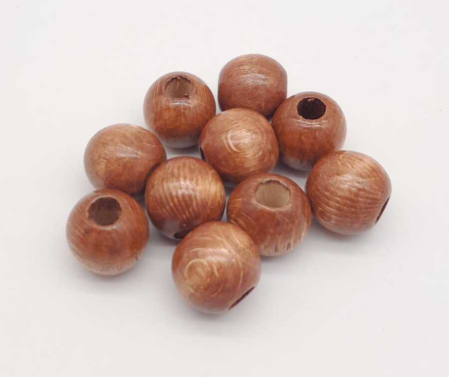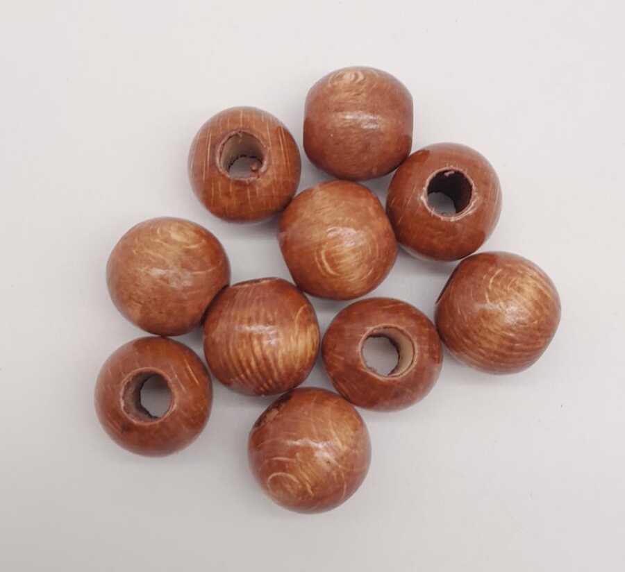 Angel Çanta Aksesuar 10 Adet Ahşap Yuvarlak Boncuk. (Koyu Renk)