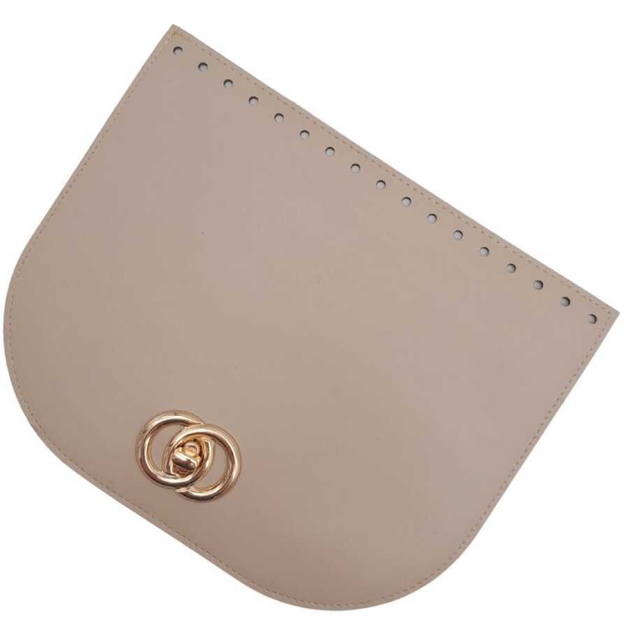 Angel Çanta Aksesuar 24x19 cm Suni Deri Bej Renk Kapak Light Gold Metalli