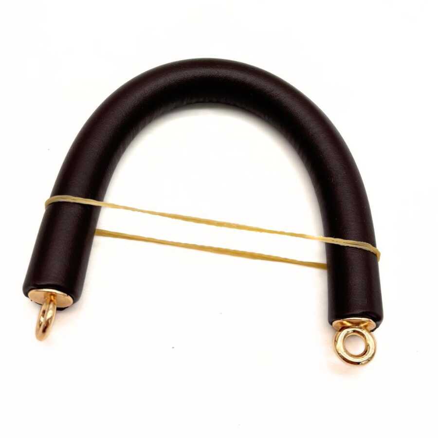 Angel Çanta Aksesuar 27 cm Rulo Model Suni Deri Koyu Kahve Çanta Sapı Light Gold Metalli