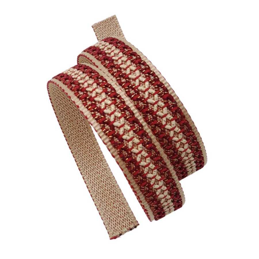 Angel Çanta Aksesuar 3 cm Polyester Kolon Bej Kırmızı Simli 1 Metre