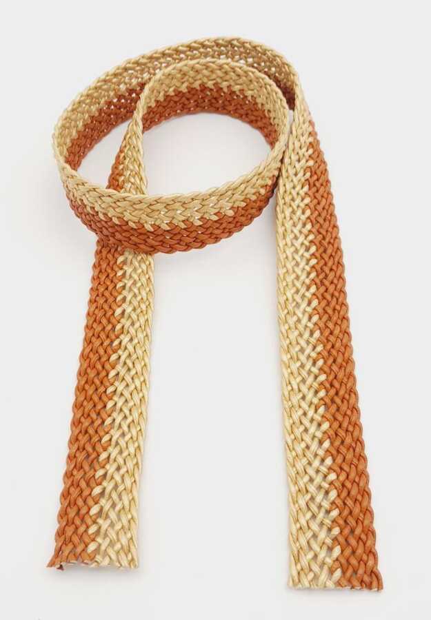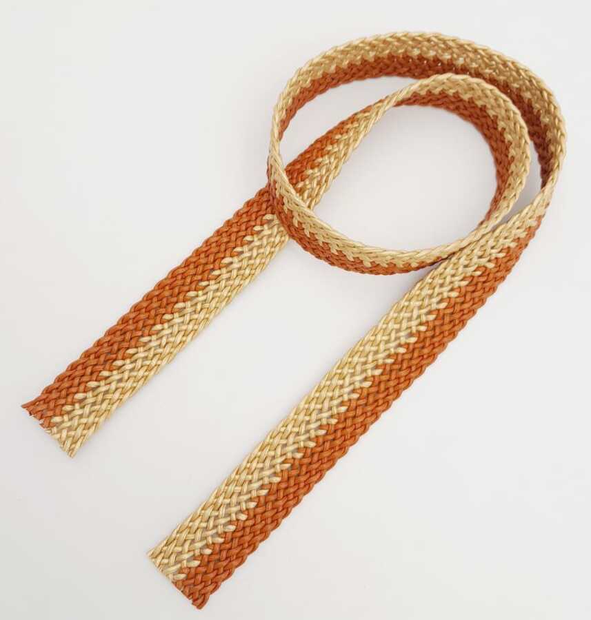Angel Çanta Aksesuar 3.5 cm Gold Taba Renk Deri Hasır Örgü Kolon 1 Metre