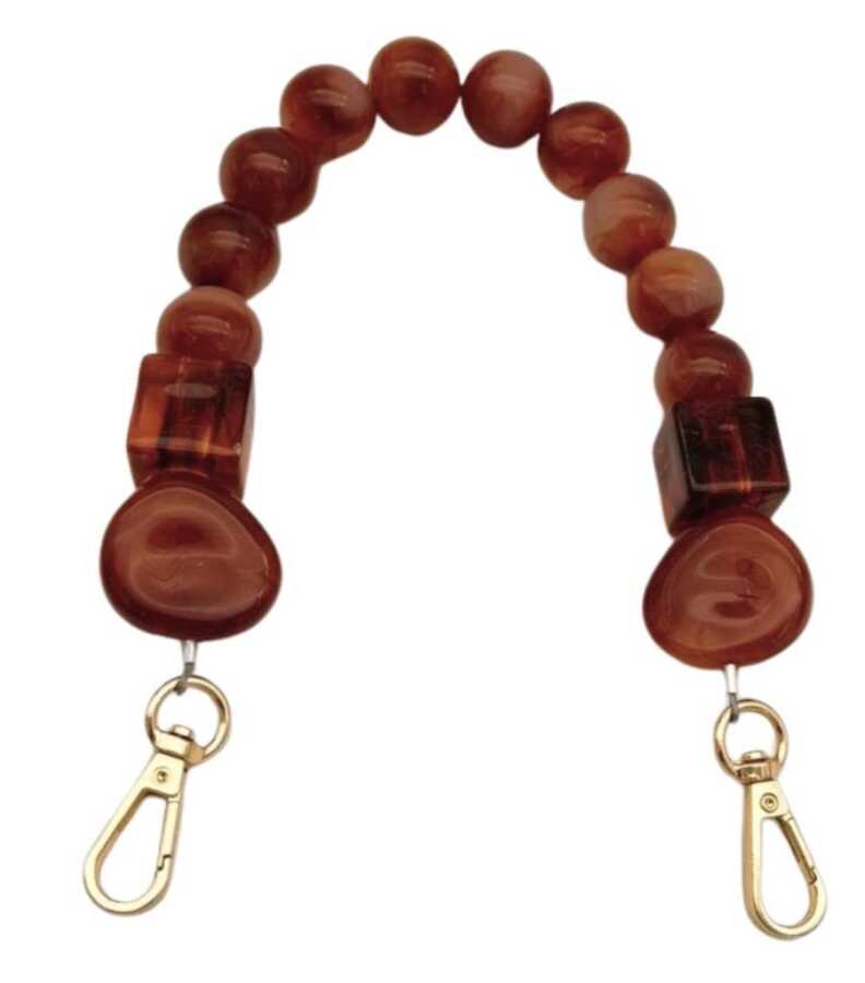 Angel Çanta Aksesuar 36 cm Koyu Tarçın Boncuklu Çanta Sapı Yaylı Halkalı