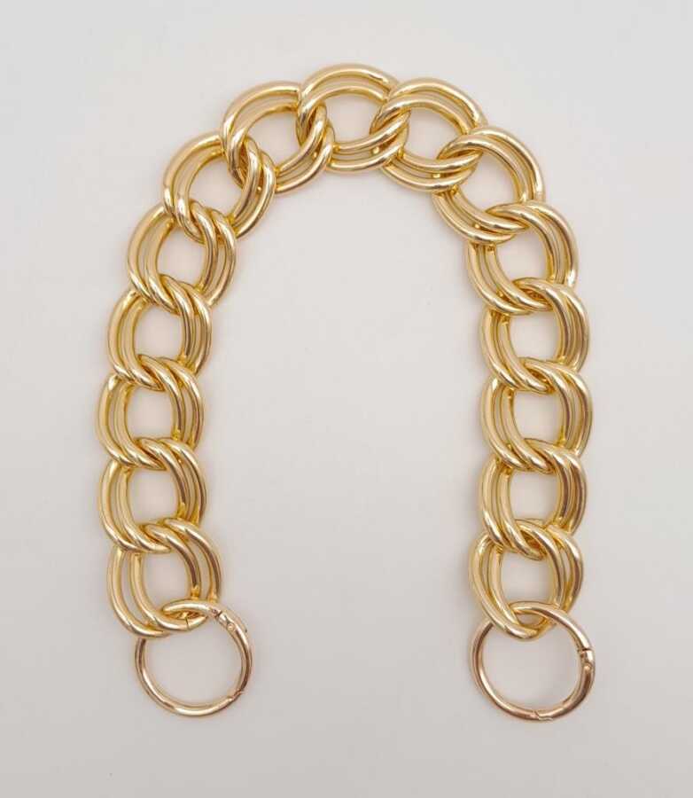 Yaylı Halkalar Dahil Uzunluk: 38 cm Zincir Genişlik: 3 cm Renk: Light Gold Ucunda Yaylı Halkalar takılı haldedir. Tek olarak satılır.