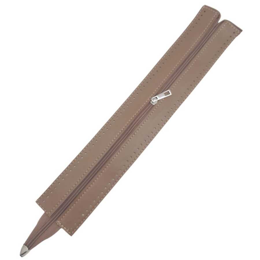 Deri Kısım Uzunluk: 40 cm Deri Kısım Genişlik: 7 cm Metal Rengi: Gümüş Suni deriden üretilmiştir. Kenarlarında delikler tığ ile monte etmek için tasarlanmıştır. Örgünün kendi ipi ile dikerek de montaj yapılabilir.