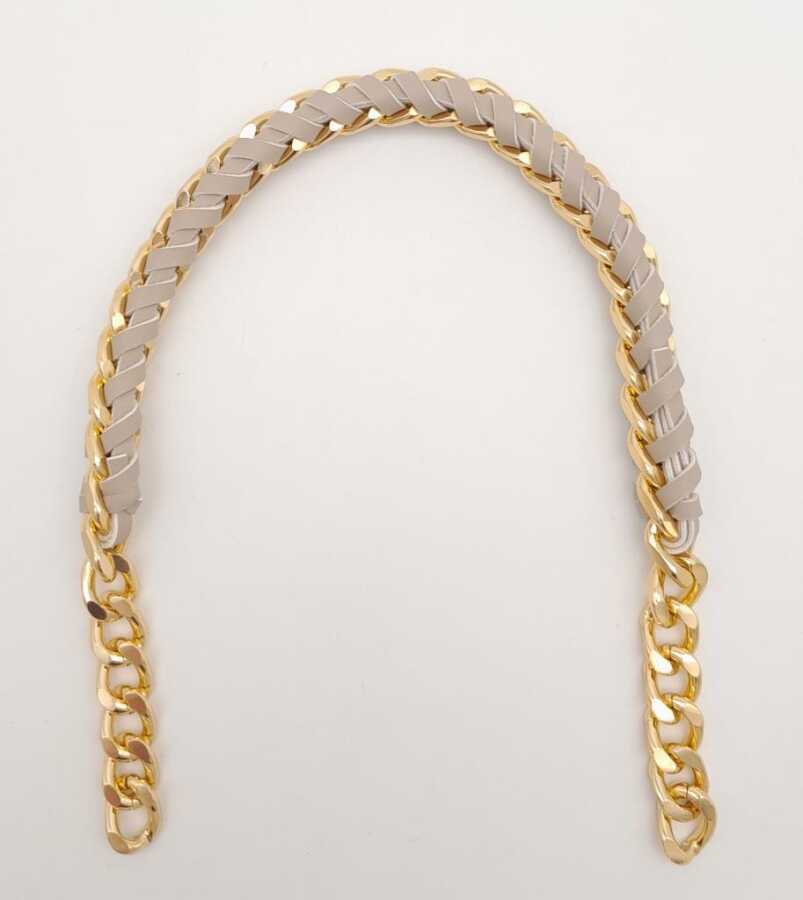 Uzunluk: 40 cm Derili Kısım Genişlik: 1,5 cm Zincir Metal Renk: Light Gold Tek olarak satılır. Çantalarınızın güzelliğine güzellik katar.