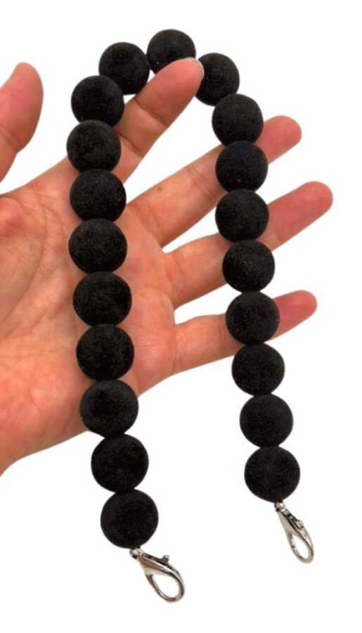 Angel Çanta Aksesuar 40 Cm Kadife Siyah Renk Çanta Sapı Kancalı Gümüş Metalli