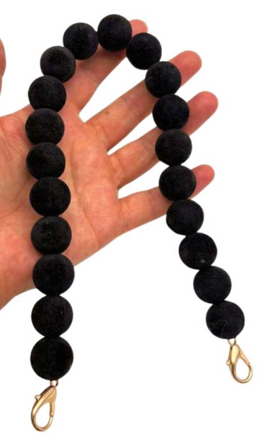 Angel Çanta Aksesuar 40 Cm Kadife Siyah Renk Çanta Sapı Kancalı Light Gold Metalli