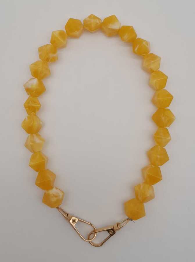 Angel Çanta Aksesuar 40 cm Mini Sekizgen Akrilik Hardal Renk Çanta Sapı Light Gold Metalli