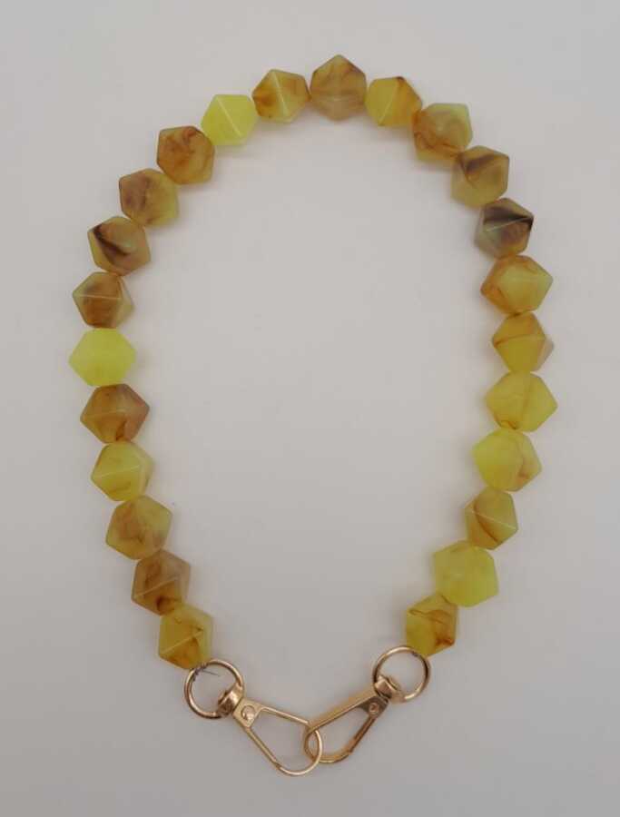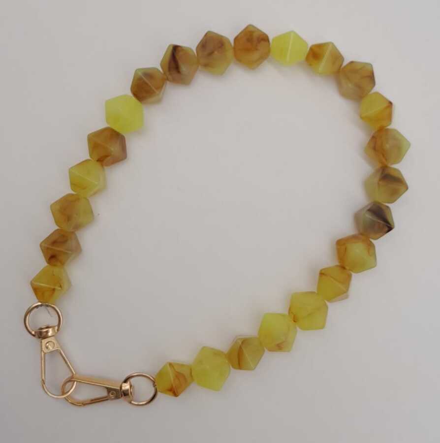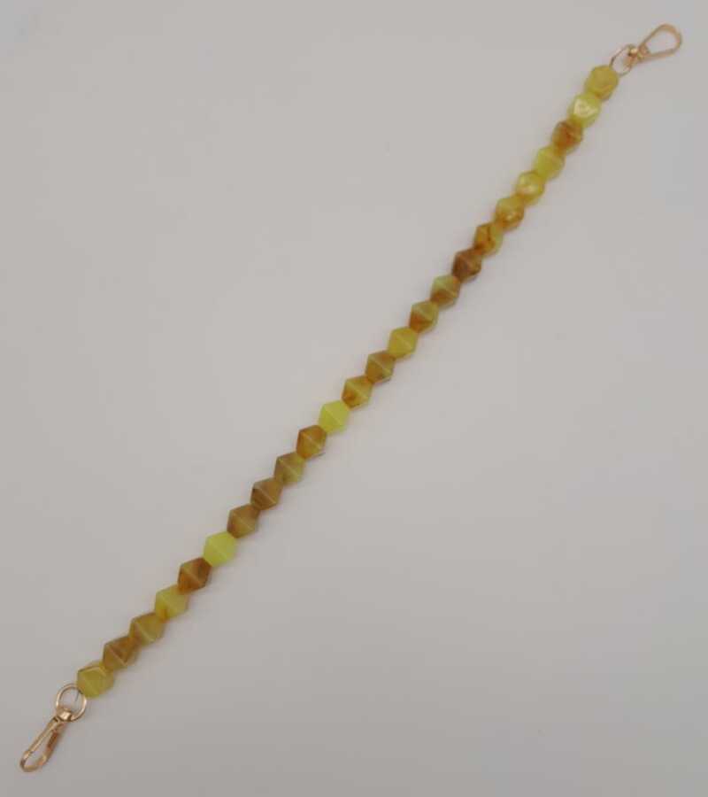 Angel Çanta Aksesuar 40 cm Mini Sekizgen Akrilik Taba Neon Sarı Renk Çanta Sapı Light Gold Metalli