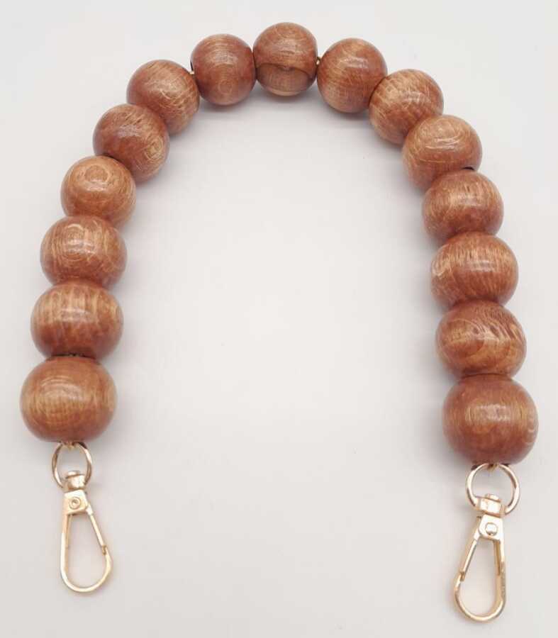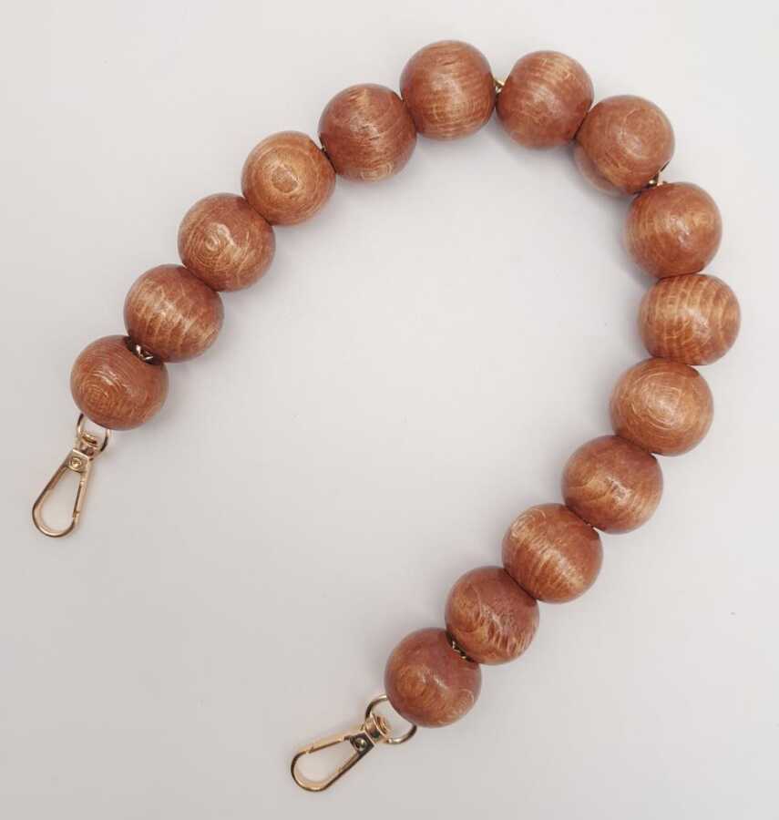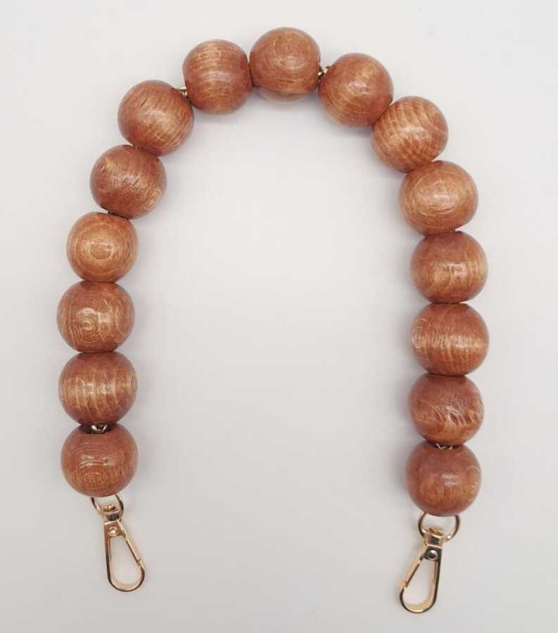 Kancalar Dahil Uzunluk: 40 cm Ahşap Boncuk Çapı : 24 mm Metal Aparatı Renk : Light Gold Tek olarak satılır.