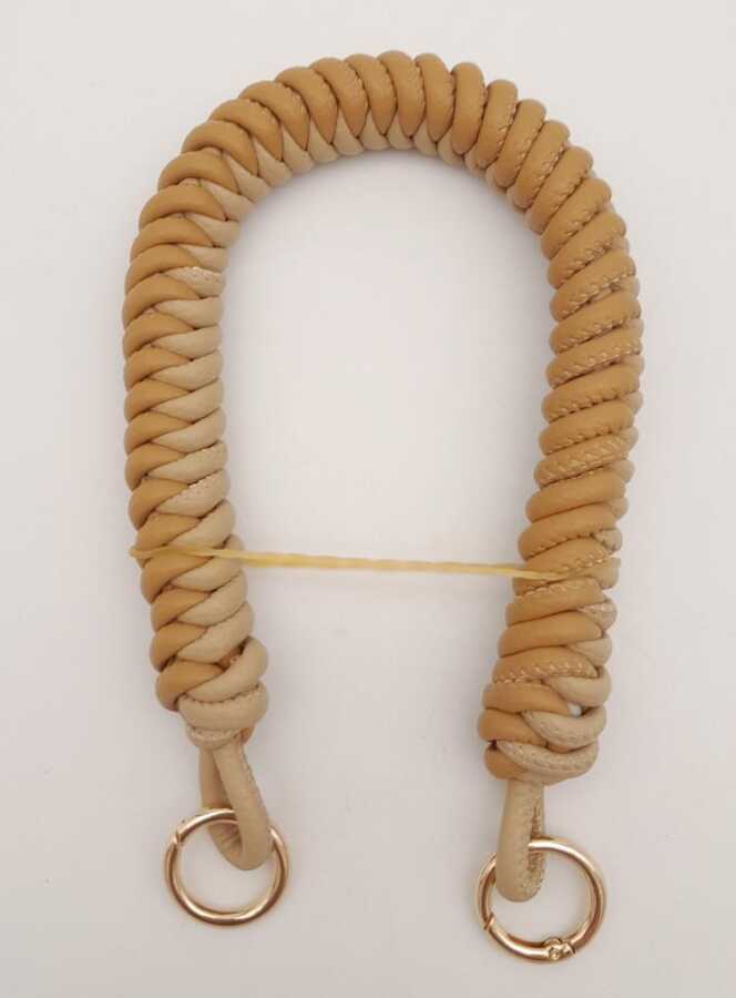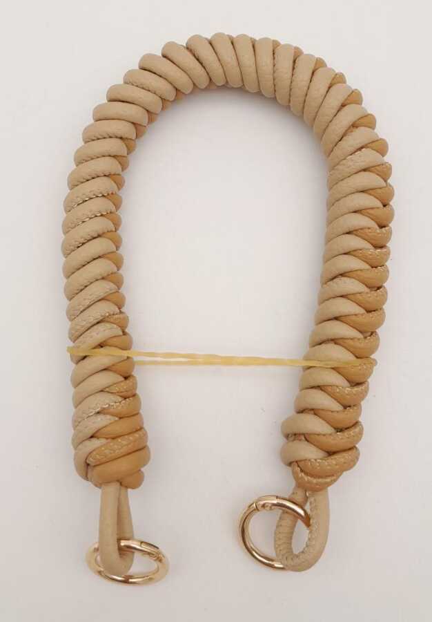 Angel Çanta Aksesuar 42 cm Bej Sütlü Kahve Renk Örgü Model Suni Deri Çanta Sapı Light Gold Metalli