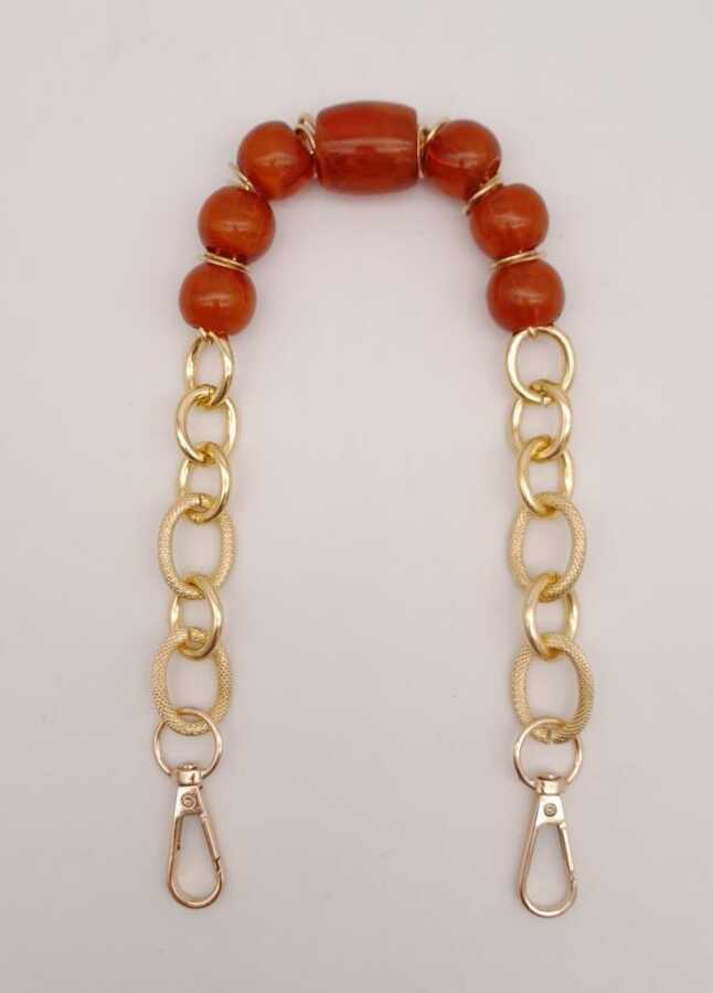 Angel Çanta Aksesuar 42 cm Kancalı Kehribar Renk Akrilik Zincir Light Gold Metalli