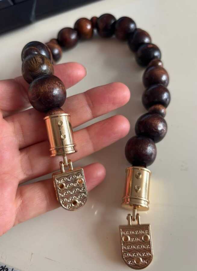 Angel Çanta Aksesuar 12 cm Ahşap Boncuklu Bilezik Model Koyu Ahşap Renk Çift Sap
