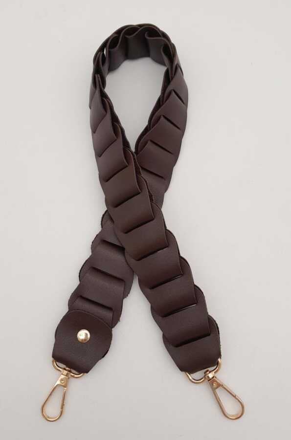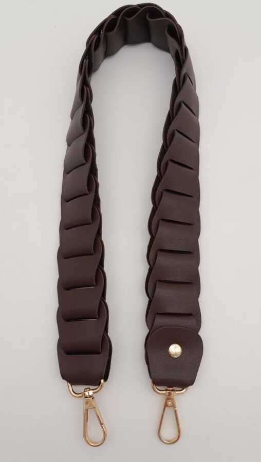 Angel Çanta Aksesuar 62 cm Yassı Örgü Model Suni Deri Kahverengi Çanta Sapı Light Gold Metalli