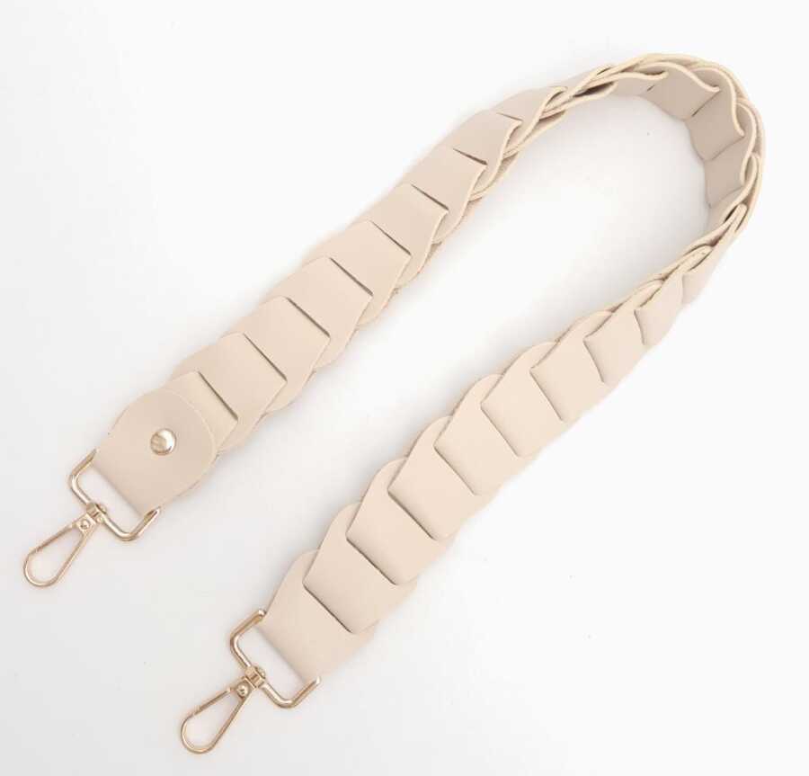 Angel Çanta Aksesuar 62 cm Yassı Örgü Model Suni Deri Krem Çanta Sapı Light Gold Metalli