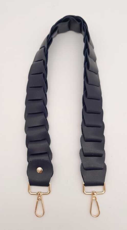 Angel Çanta Aksesuar 62 cm Yassı Örgü Model Suni Deri Lacivert Çanta Sapı Light Gold Metalli
