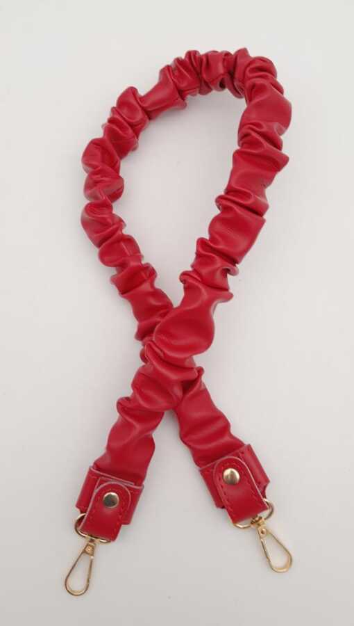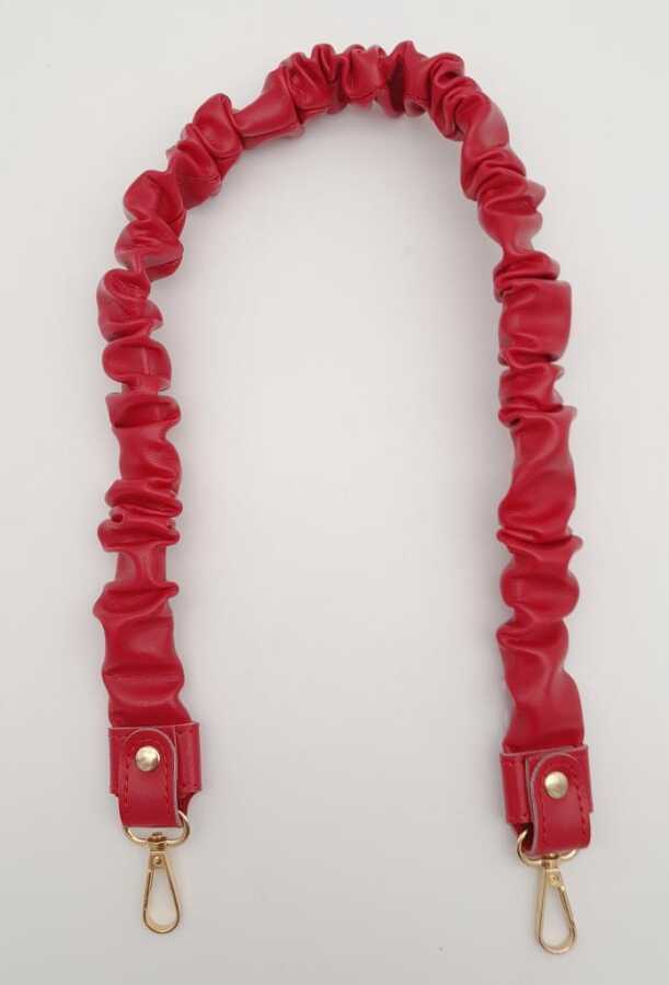 Angel Çanta Aksesuar 70 cm Büzgü Model Suni Deri Kırmızı Renk Çanta Sapı Light Gold Metalli