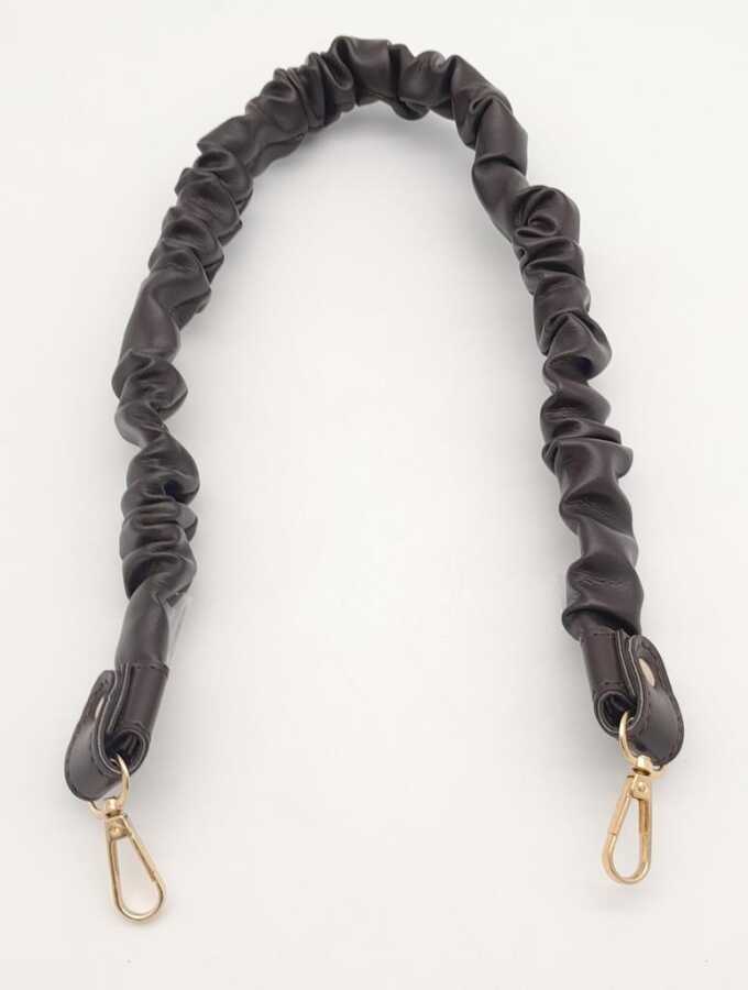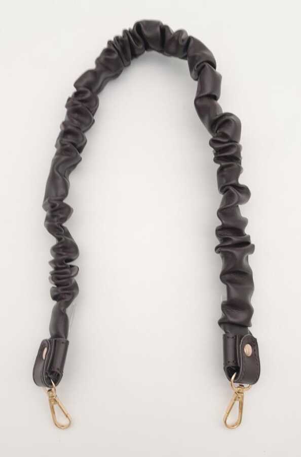 Angel Çanta Aksesuar 70 cm Büzgü Model Suni Deri Koyu Kahverengi Çanta Sapı Light Gold Metalli