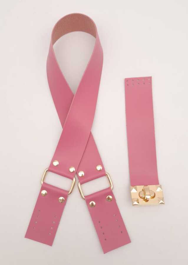 Angel Çanta Aksesuar 70x4 cm Suni Deri Çanta Saplı Kapaklı Fuşya Çanta Seti Light Gold Metalli