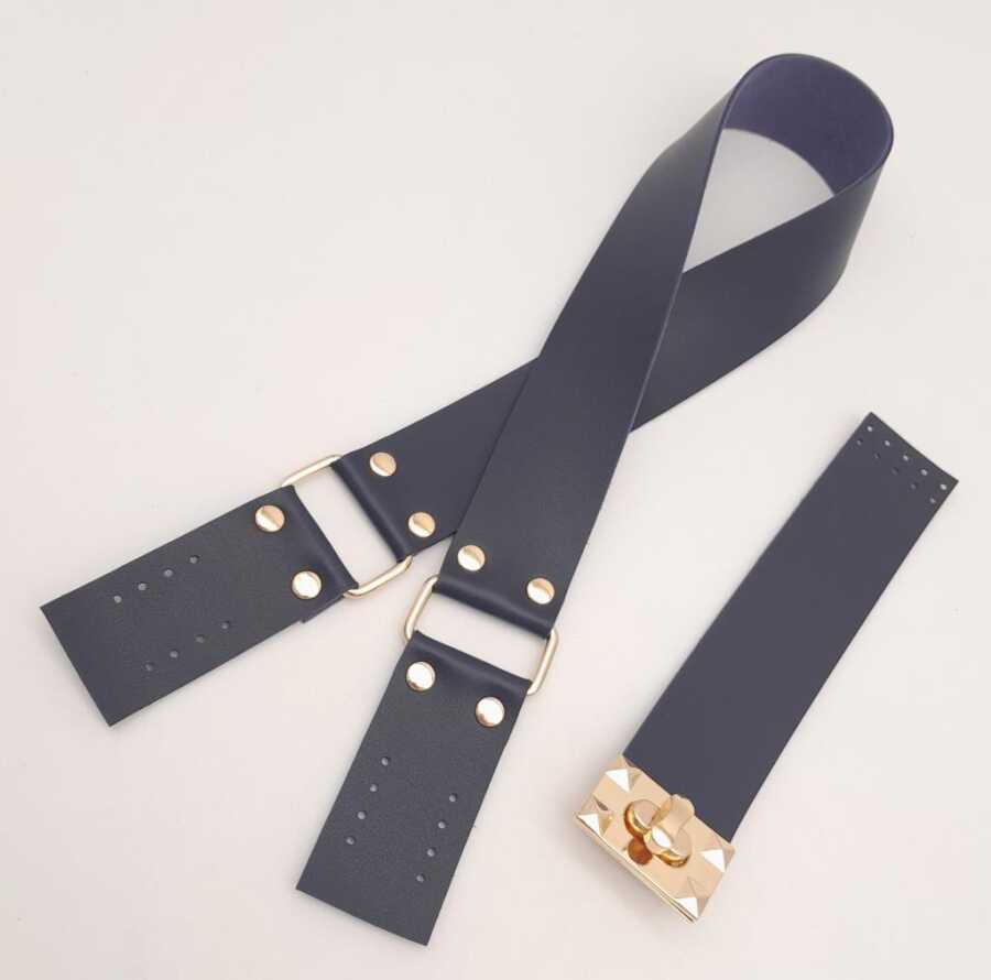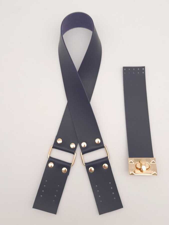 Angel Çanta Aksesuar 70x4 cm Suni Deri Çanta Saplı Kapaklı Lacivert Çanta Seti Light Gold Metalli