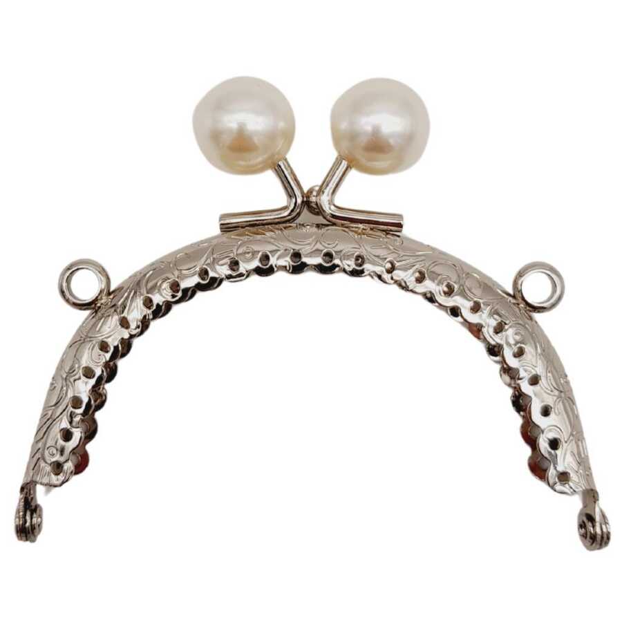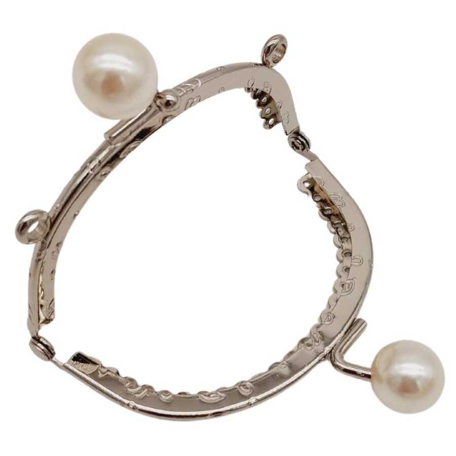 Angel Çanta Aksesuar 8.5 cm İncili Oval Cüzdan Çanta Klipsi Bursu Gümüş Metalli