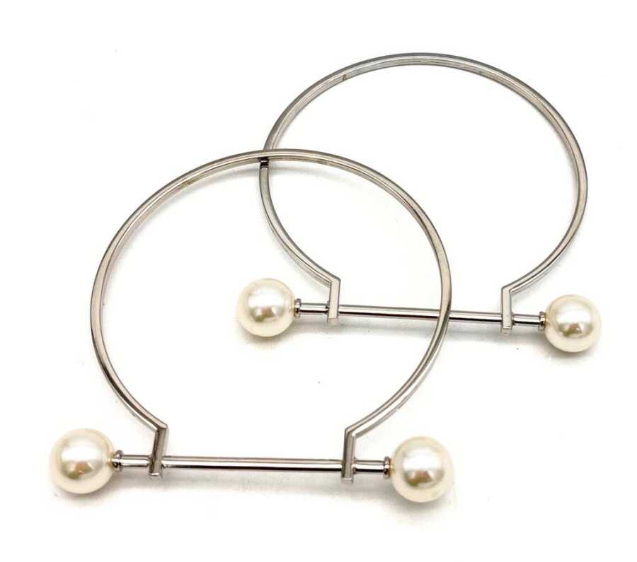Angel Çanta Aksesuar 9 cm İncili Gümüş Renk İncili Metal Çanta Sapı