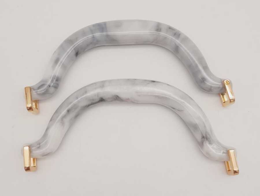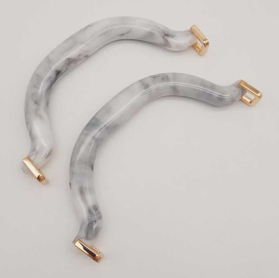 Angel Çanta Aksesuar Akrilik Gri Renk Mermer Desen Light Gold Halkalı Çanta Tutma Sapı