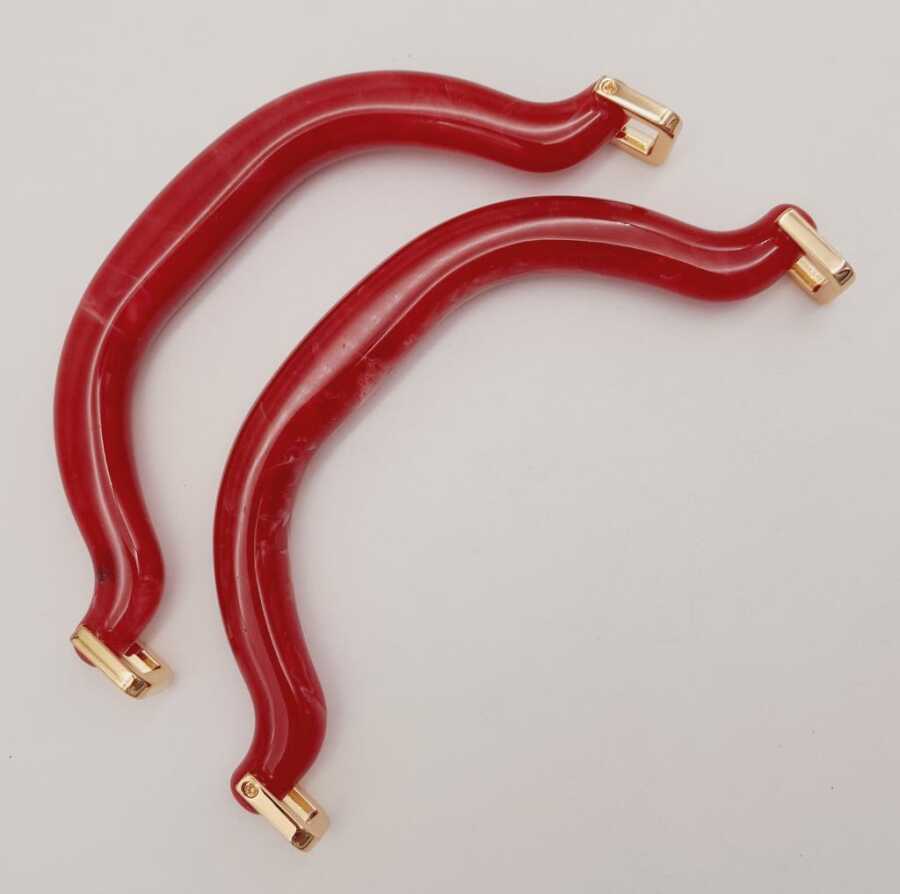 Angel Çanta Aksesuar Akrilik Kırmızı Renk Mermer Desen Light Gold Halkalı Çanta Tutma Sapı