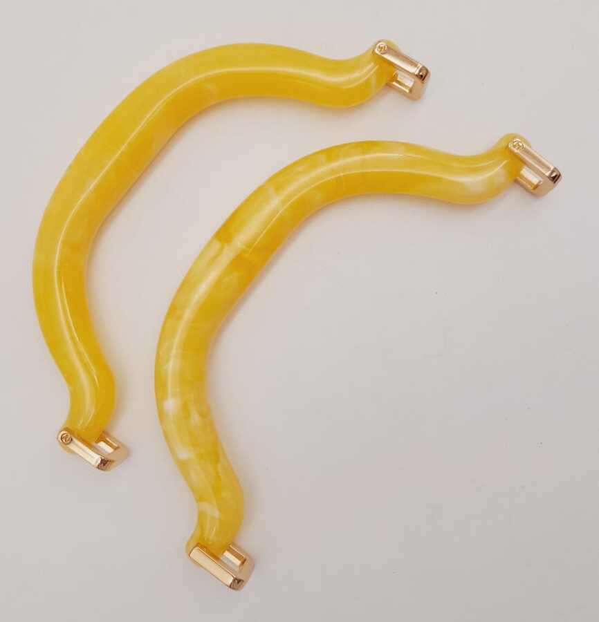 Angel Çanta Aksesuar Akrilik Sarı Renk Mermer Desen Light Gold Halkalı Çanta Tutma Sapı