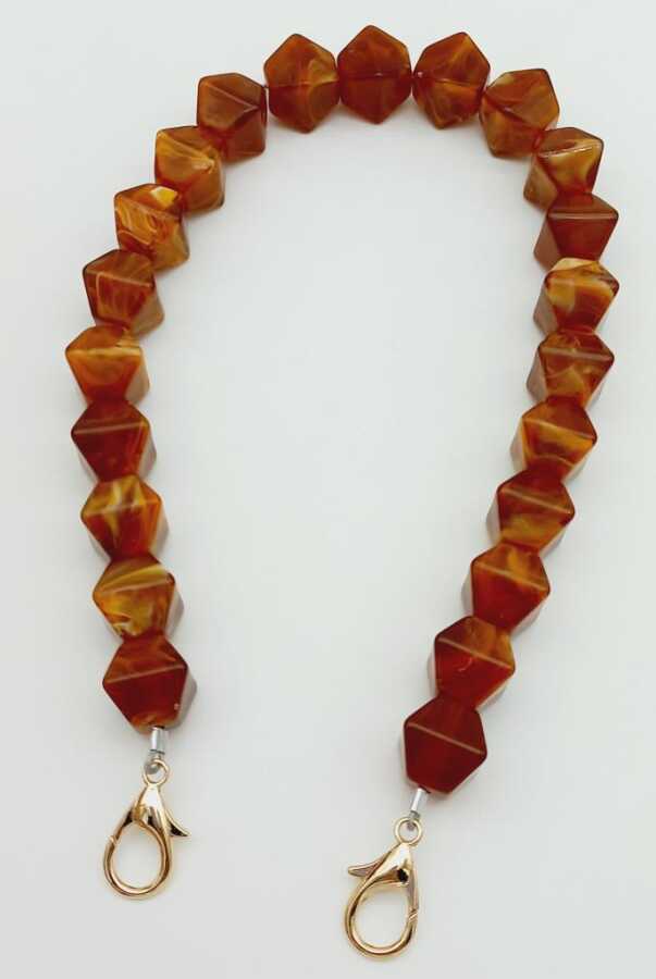 Angel Çanta Aksesuar Akrilik Sekizgen Boncuklu Kehribar Renk 50 Cm Çanta Sapı