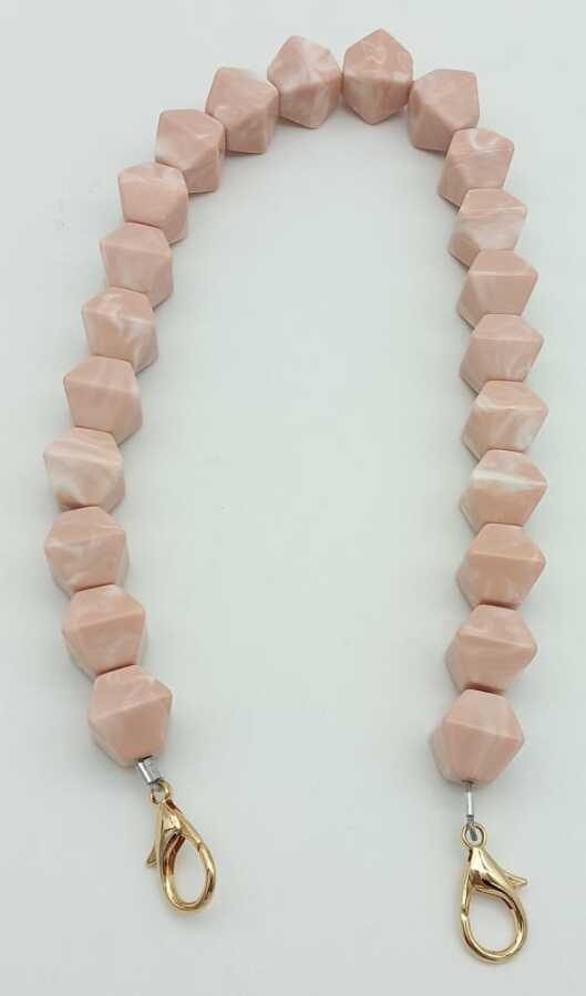 Angel Çanta Aksesuar Akrilik Sekizgen Boncuklu Pudra Renk 50 Cm Çanta Sapı