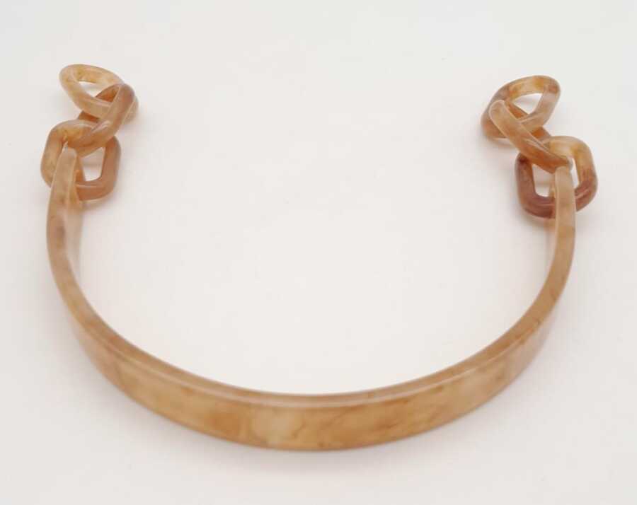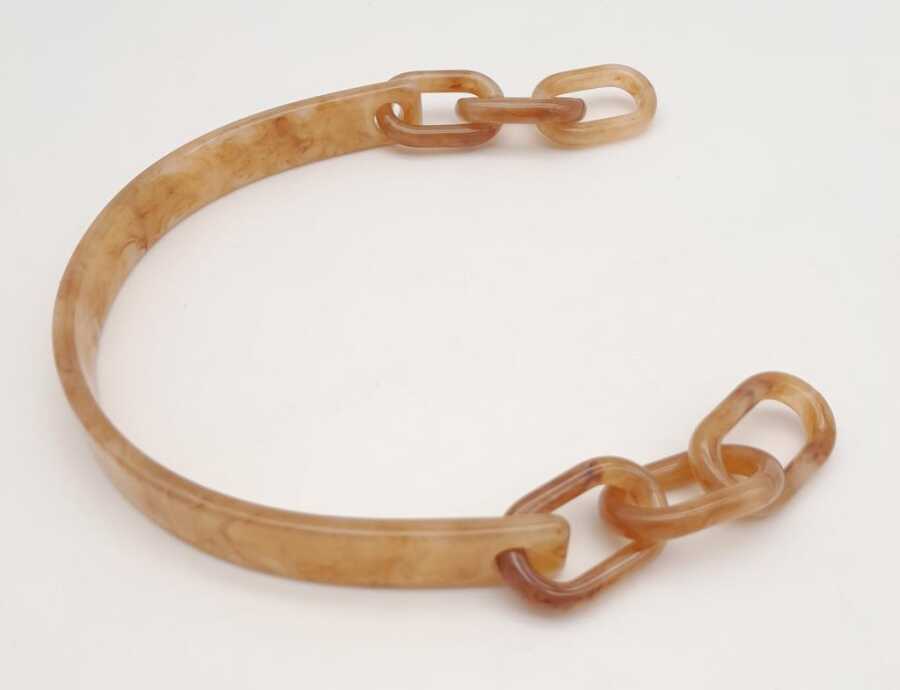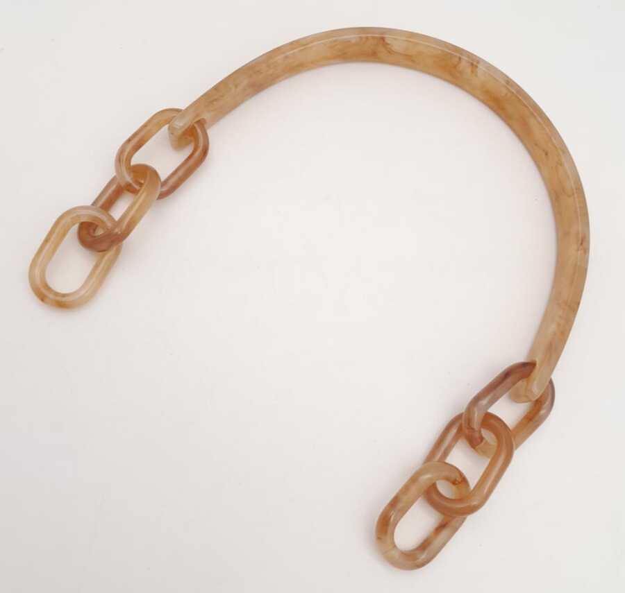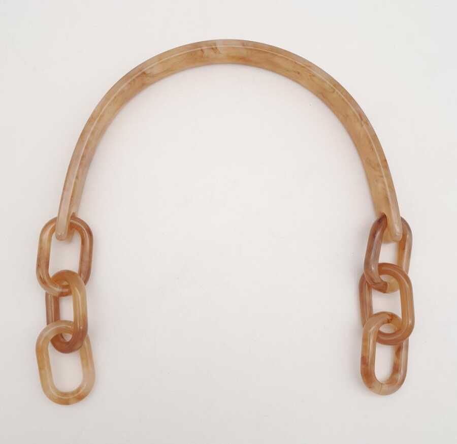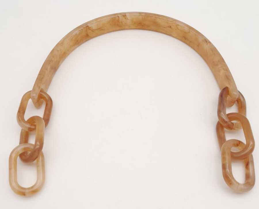 Angel Çanta Aksesuar Akrilik Sütlü Kahve Renk Mermer Desen Zincirli Çanta Tutma Sapı