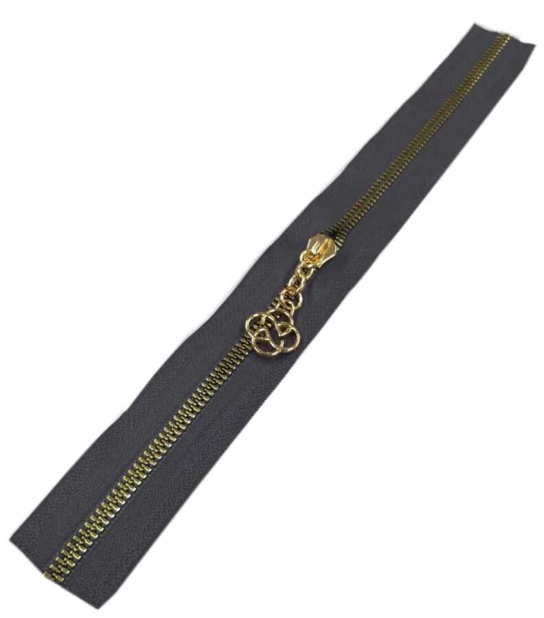 Angel Çanta Aksesuar Başlıklı Fermuar 40 Cm Light Gold Metal Koyu Gri
