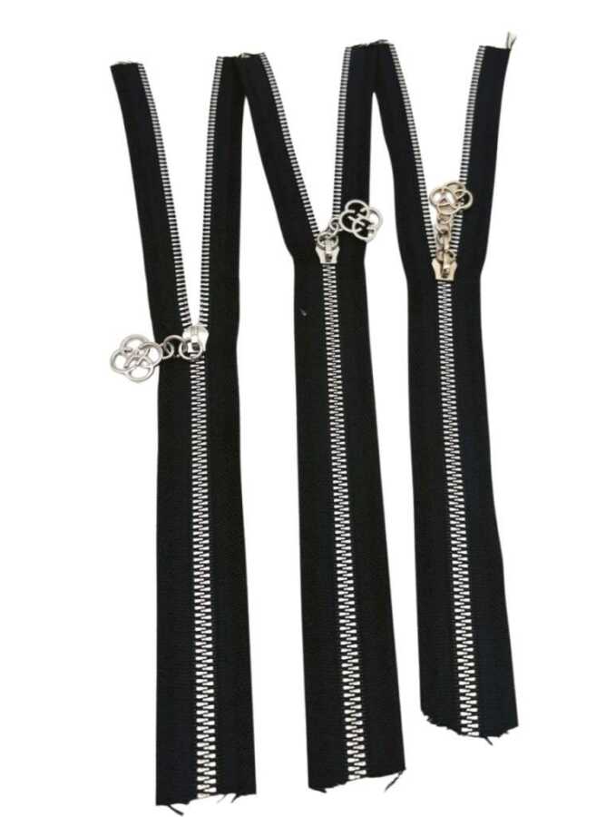 Angel Çanta Aksesuar Başlıklı Fermuar Set 30 Cm Gümüş Metal Siyah 3 Adet