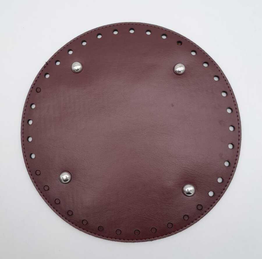 Angel Çanta Aksesuar Bordo Suni Deri 22 cm Yuvarlak Çanta Tabanı Gümüş Metalli