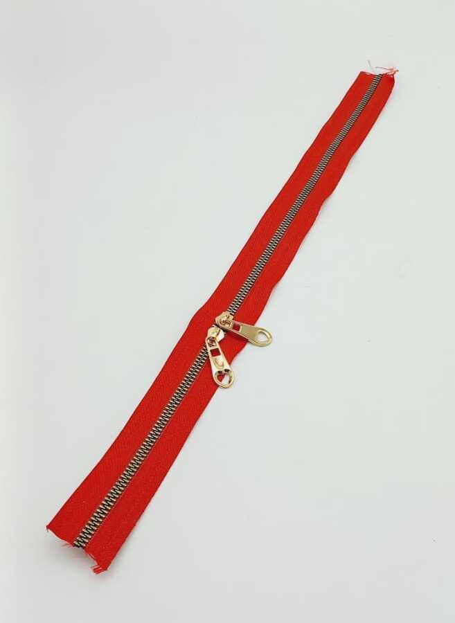 Angel Çanta Aksesuar Çift Başlı Kırmızı Fermuar Light Gold Metal 40 Cm