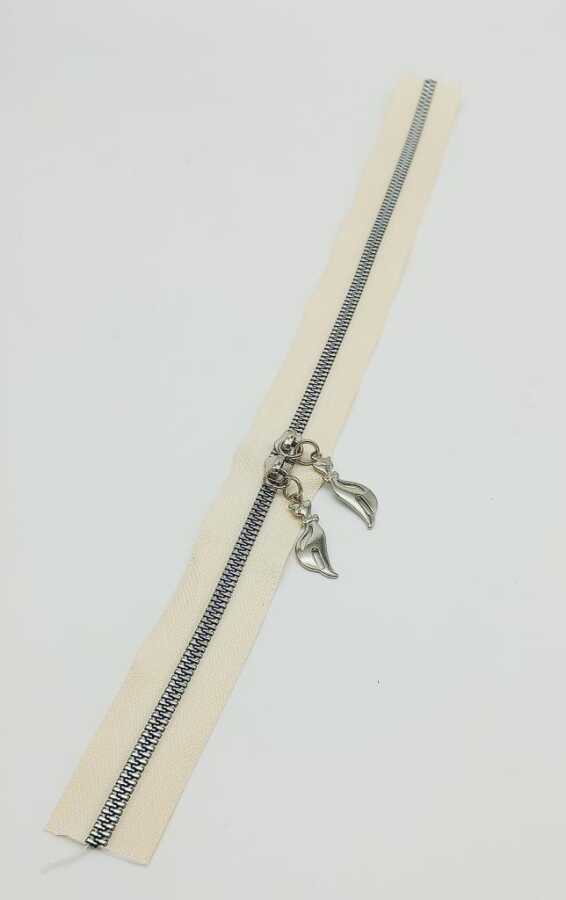 Angel Çanta Aksesuar Çift Başlı Krem Fermuar Gümüş Metal 40 Cm