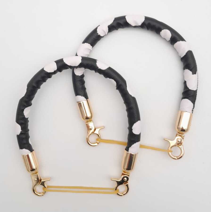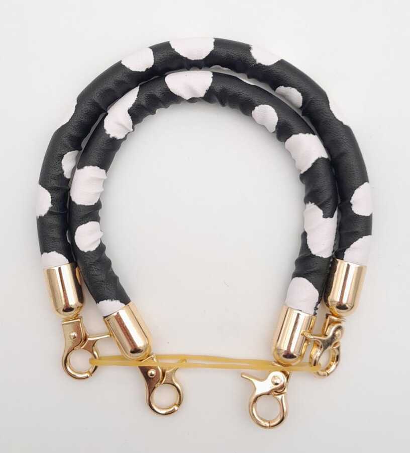 Angel Çanta Aksesuar Çift Kısa Kordon Çanta Sapı Siyah Beyaz Leopar Light Gold Metalli