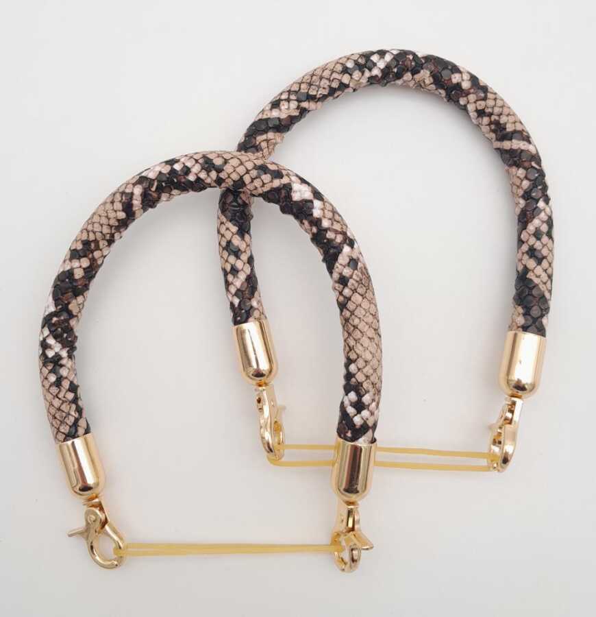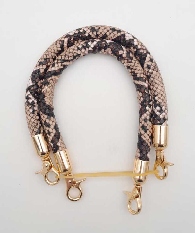 Angel Çanta Aksesuar Çift Kısa Kordon Çanta Sapı Yılan Derisi Desen Light Gold Metalli