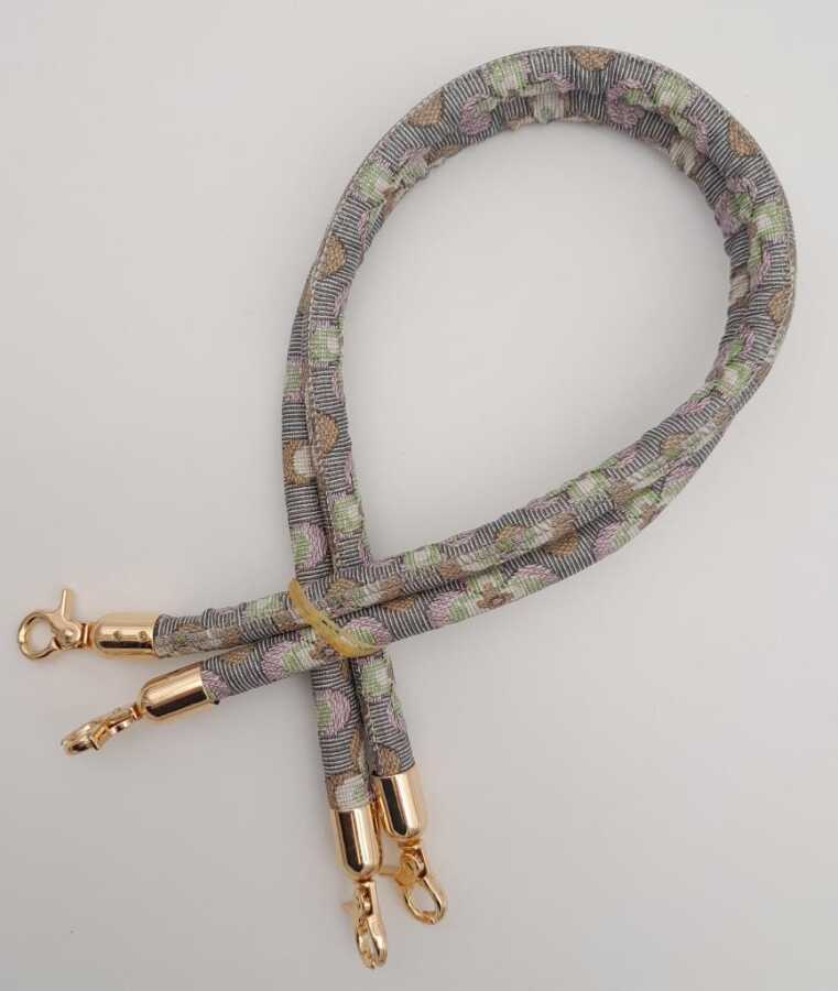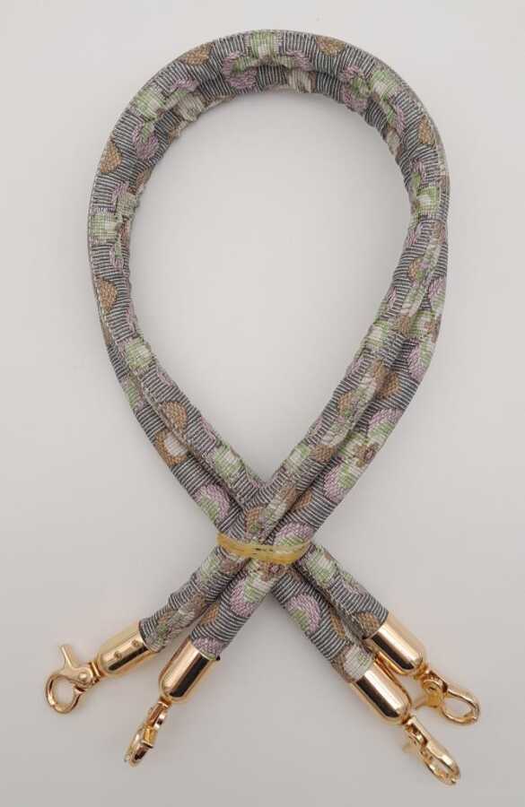 Angel Çanta Aksesuar Çift Kordon Çanta Sapı Gri Lila Çiçekli Light Gold Metalli