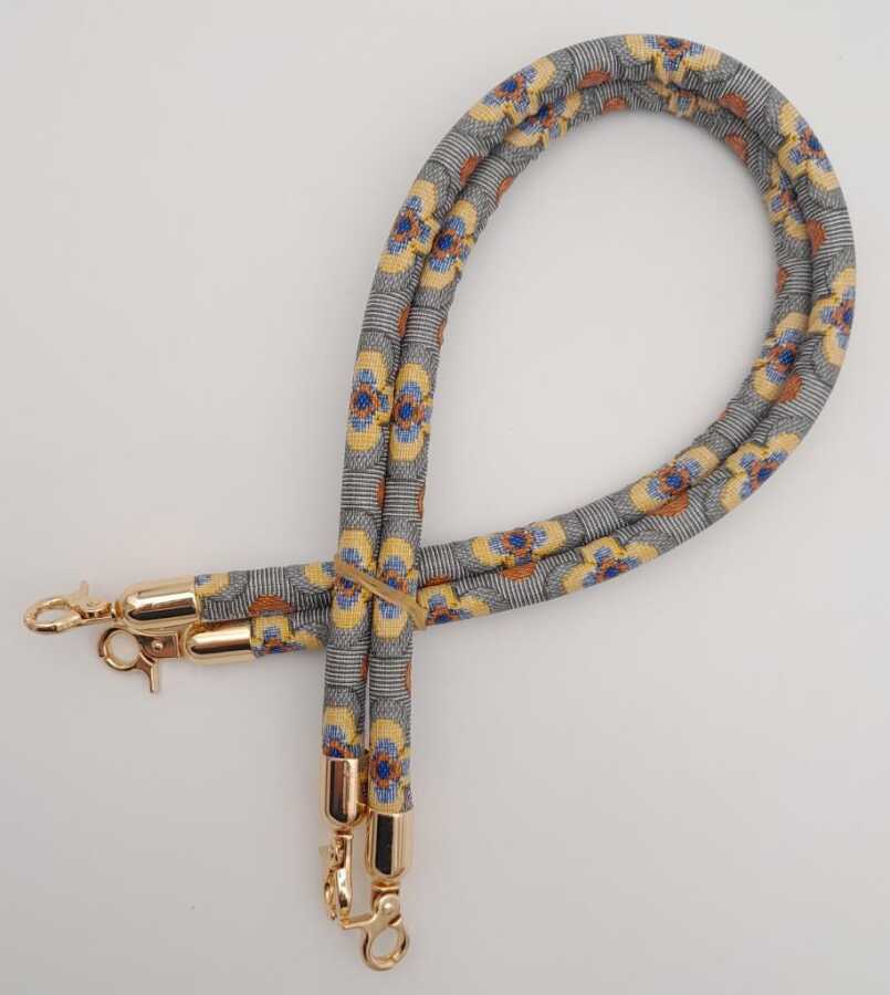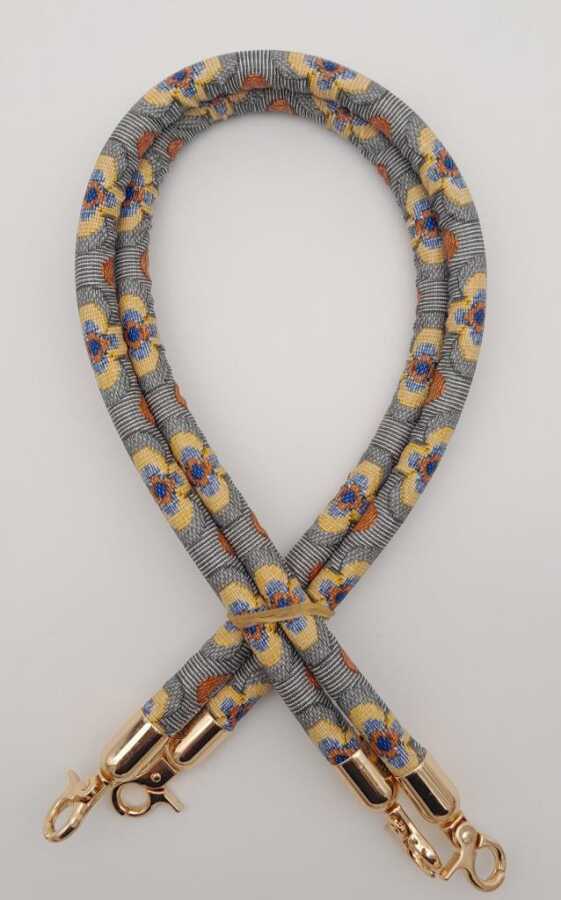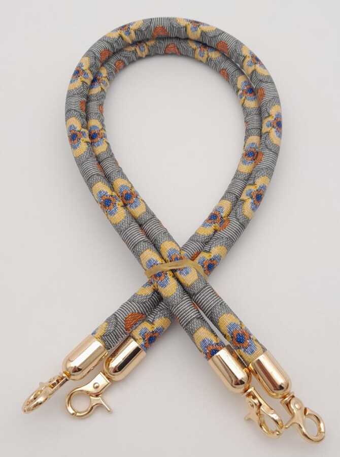 Angel Çanta Aksesuar Çift Kordon Çanta Sapı Gri Turuncu Çiçekli Light Gold Metalli