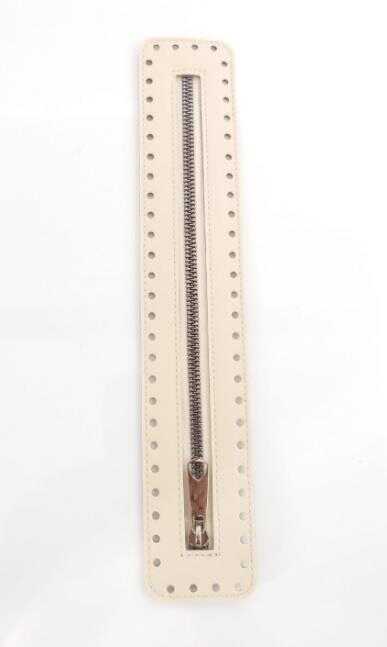Suni deri kullanılmıştır. Ebatları 30X5.5 cm'dir. Renk ve Metal seçenekleri ayrı ayrı yüklenmiştir. Kenarlarındaki delikler tığ ile monte etmek için tasarlanmıştır. Dikerek de montaj yapılabilir. Örgünün kendi ipi ile montajı yapılabilir. Tek olarak gönderilir.